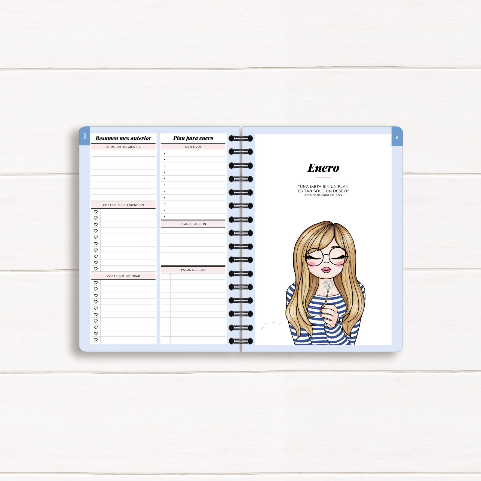 La planificación y organización, tiene que estar bien pensada, ya sea a vista diaria o semanal. Debe incluir vistas mensuales o más generales y espacios para listas, notas, wishlist, viajes…